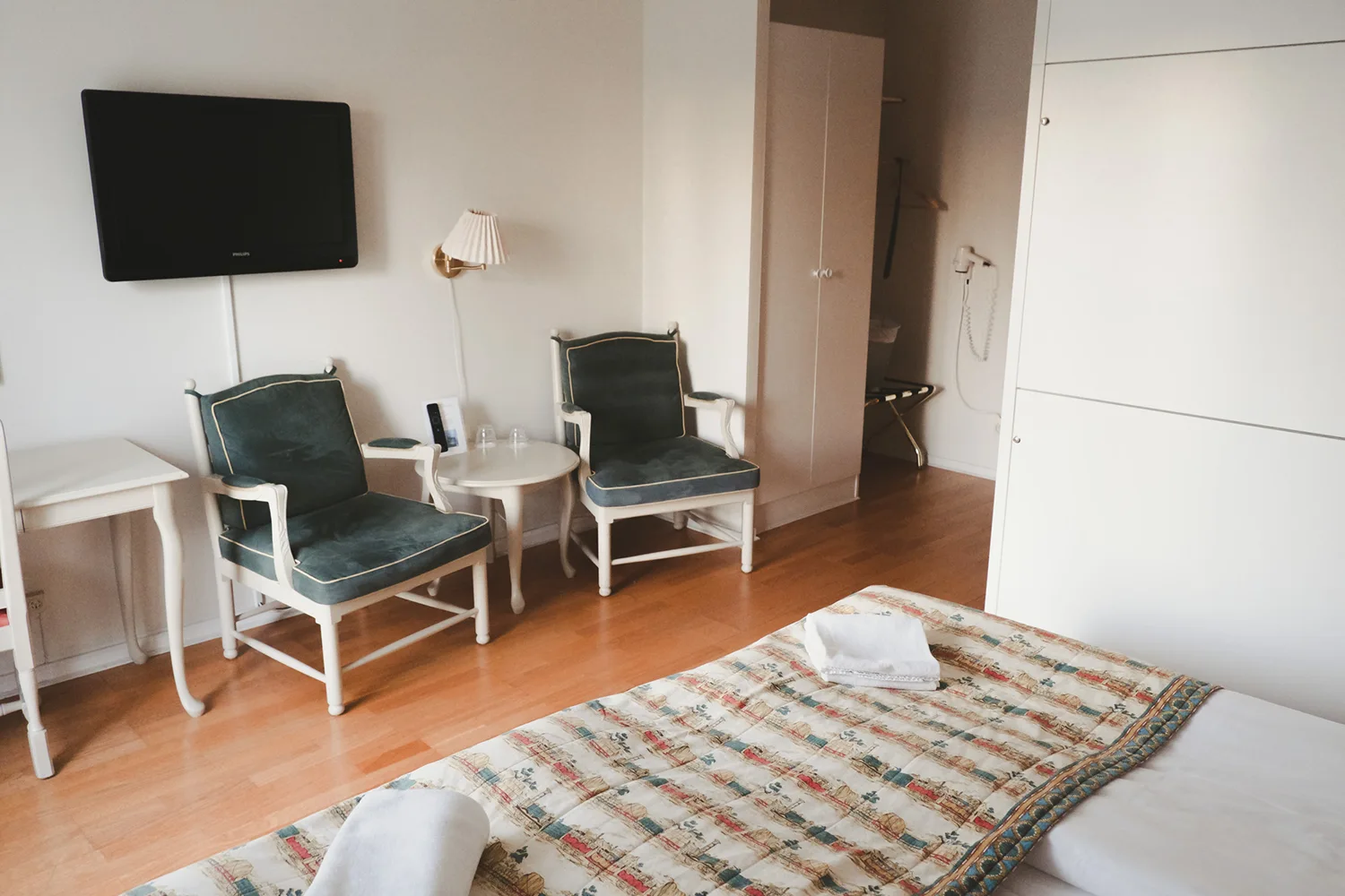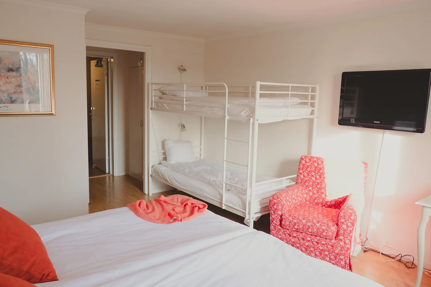 I våra andra dubbelrum kan en extrasäng ställas in för den mindre familjen. Och behöver ni en spjälsäng finns det förstås ett antal att tillgå.